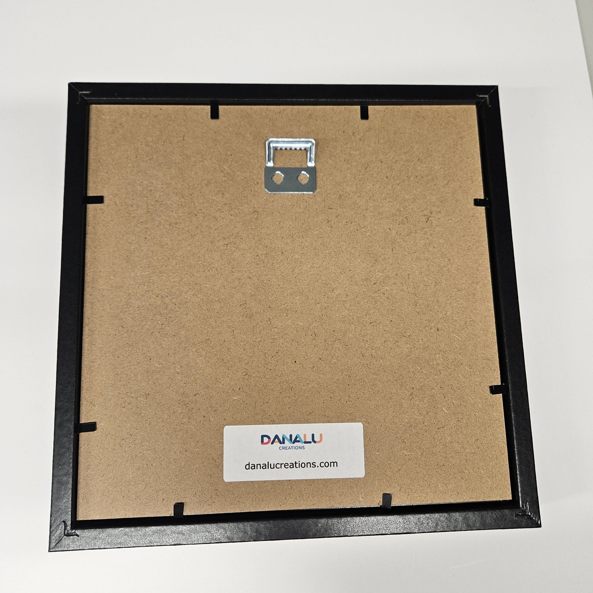 Each 1" thick frame has a glass front with tab closure and a hardware to hang on the wall.