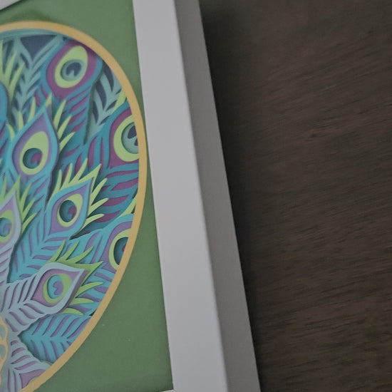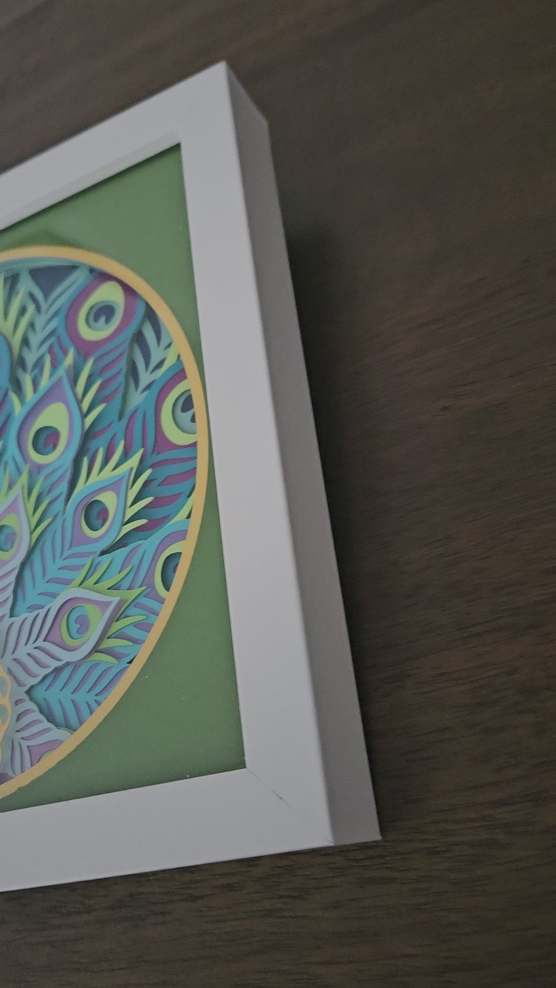Step into the colorful world of the Peacock! This stunning creature is captured in an 8x8 shadowbox, adding depth and dimension to any space. Eye-catching and majestic, the Peacock is sure to bring a unique touch to your home decor.